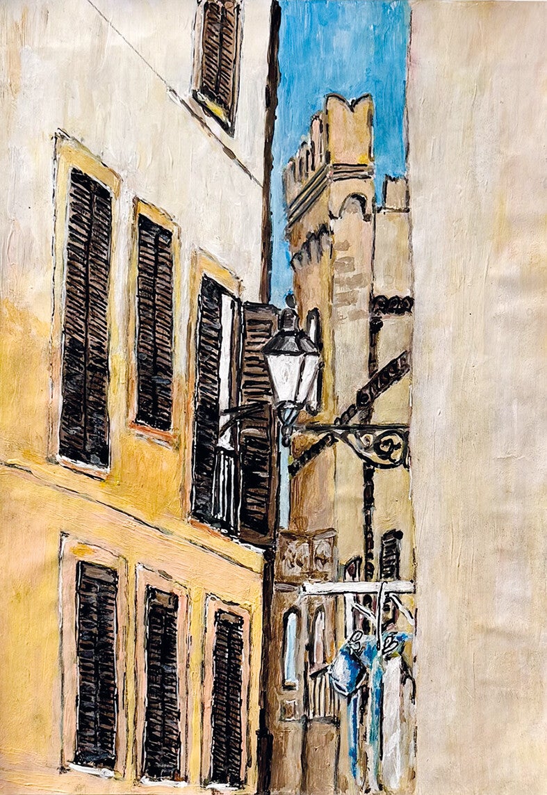 Ich habe diesen Moment mit meiner Maltechnik festgehalten. Das Werk, das die besondere Stimmung einfängt, wurde eingerahmt – ein bleibendes Andenken an diesen unvergesslichen Augenblick in Palermos Altstadt.
